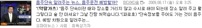 2009/08/17 - [오마이뉴스 사회] - 음주단속 알려주는 뉴스, 음주운전 예방할까?